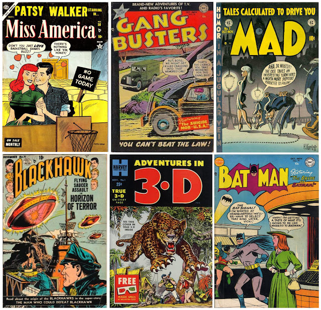 As the '50s progresses, you can see how the medium moved away from horror and superheroes and towards more family friendly fare such as westerns, funny animals, teen humor, and romance.